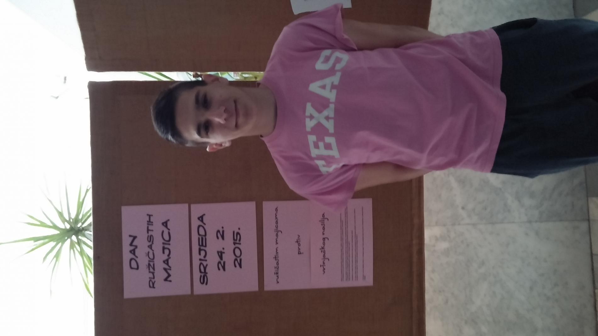 25. 2. 2015. pridružili smo se obilježavanju Dana ružičastih majica- protiv nasilja u školama i vršnjačkog nasilja.